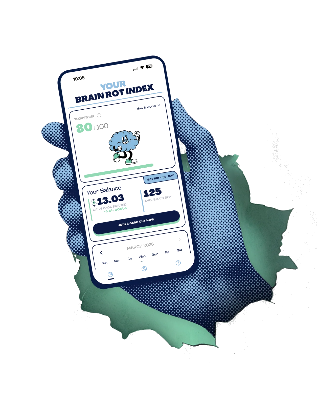 Get your Brain Rot Index (BRI) for free, and start getting paid to use your phone less — no Noble line required!